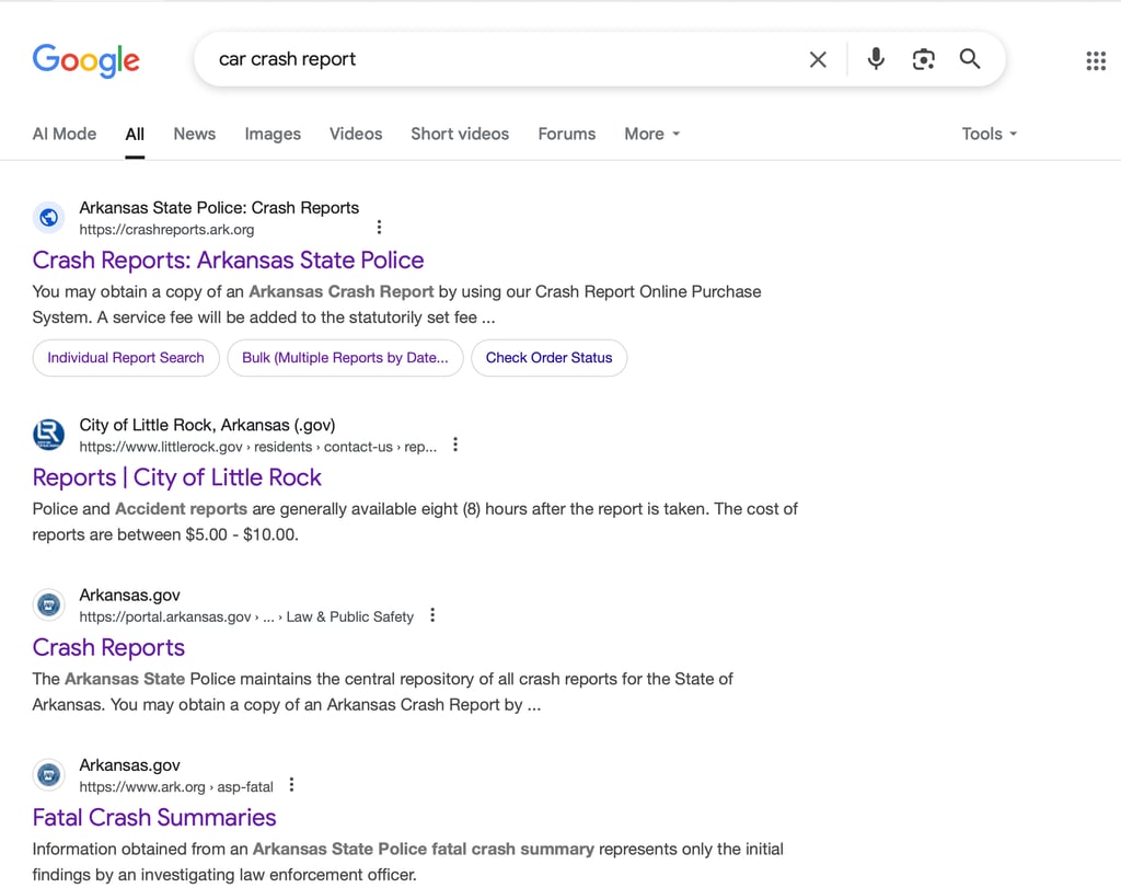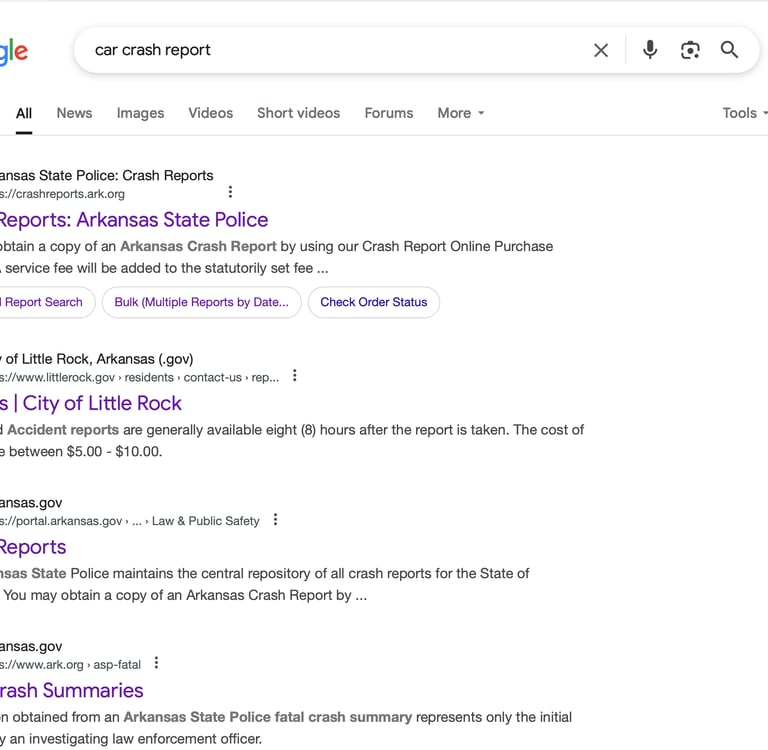 Search "Car Crash Report" or "Car Crash Report in Arkansas."