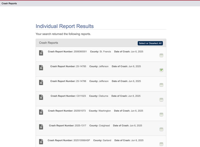 Whether the crash was reported by a local authority or the Arkansas State Police, you can find the record on Arkansas Department of Heath and Safety's database. Follow these steps to find and purchase the report.